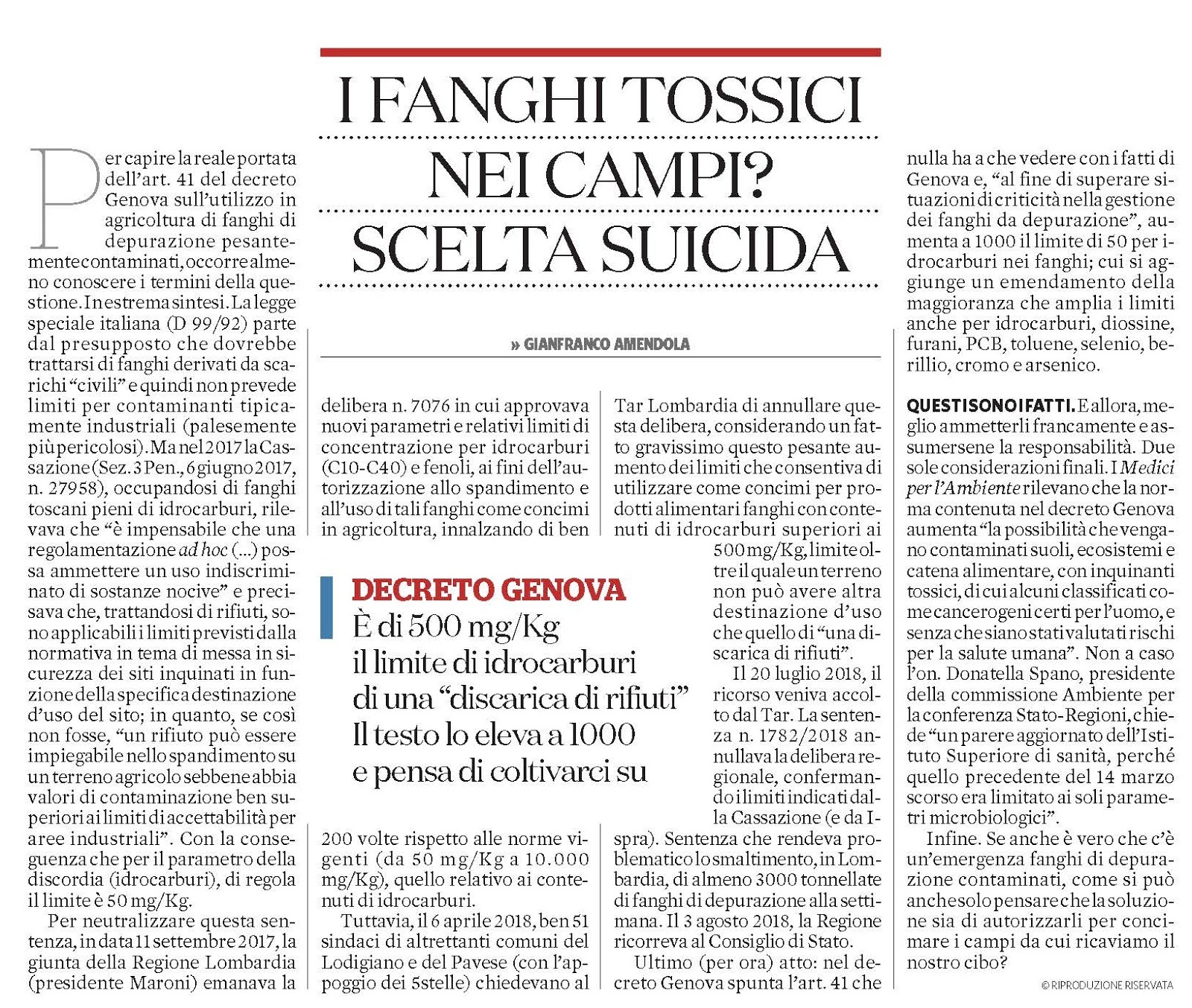 (segui il Link) https://www.pressenza.com/it/2019/01/fanghi-di-depurazione-laumento-dei-limiti-inquinanti-un-favore-alle-ecomafie/